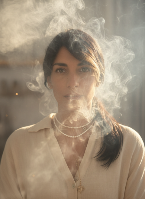 Inspired by the temple’s incense offering, a sacred blend of resins and light.